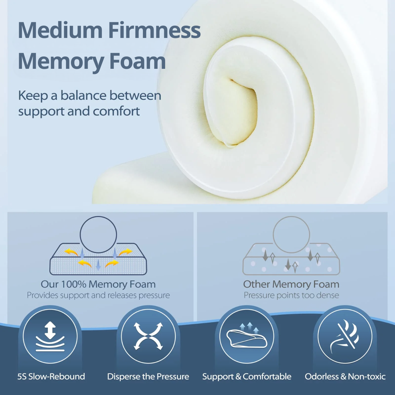 Made from high-grade memory foam, our pillow provides lasting comfort with a slow rebound that maintains its shape. It's durable, elastic, and temperature-regulating for a cool, comfortable sleep.