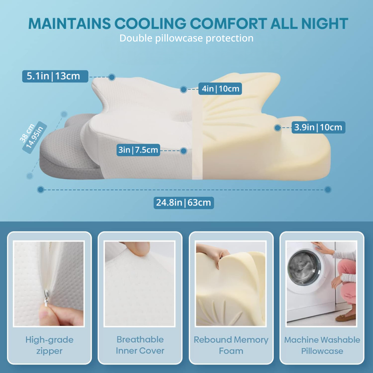 Premium Memory Foam: Constructed from high-grade memory foam, our pillow offers a slow rebound for lasting comfort without losing shape. It's durable, elastic, and temperature-regulating, providing a cool and comfortable sleep environment.
