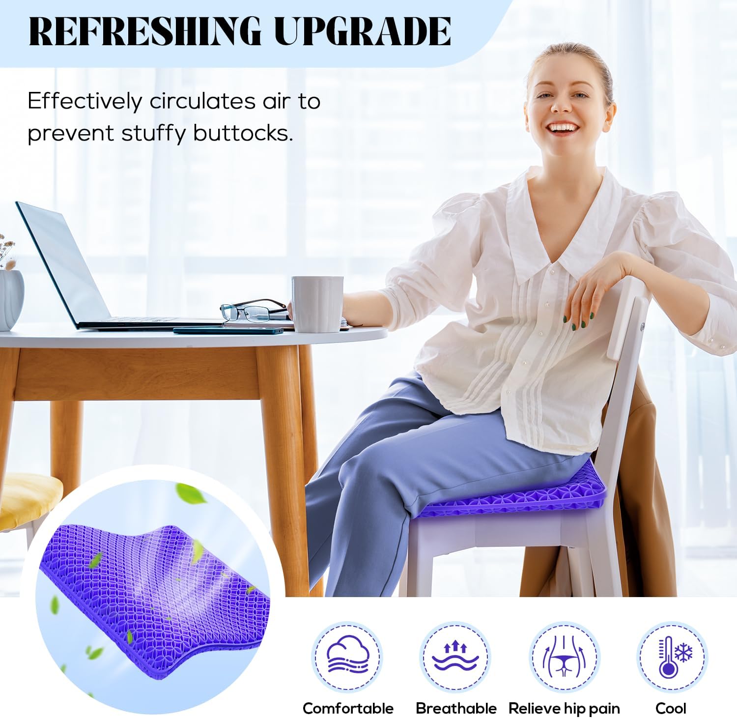 No more peeling yourself off a sweaty seat. No more that gross, sticky feeling after an hour at your desk.